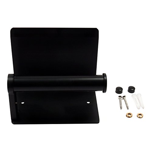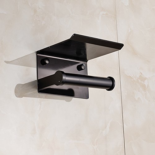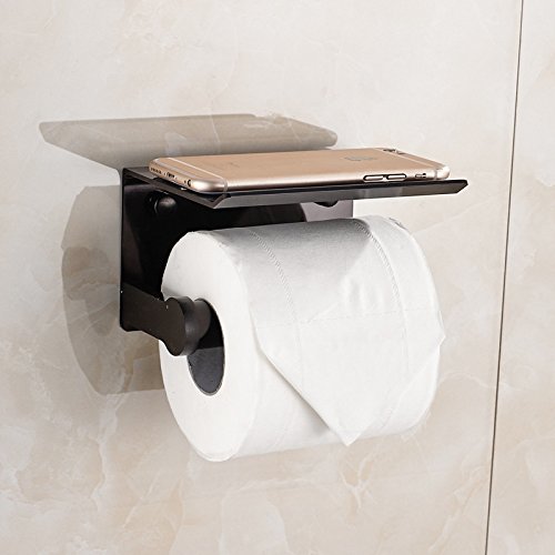 Toilet Paper Roll Holder,SHACOS Wall Mounted Lavatory Tissue Holder with Phone Storage Shelf,Aluminum-Magnesium Alloy (Black, 5.2×4.5×3.2 Inch)