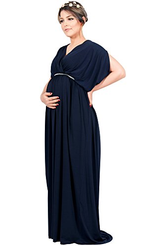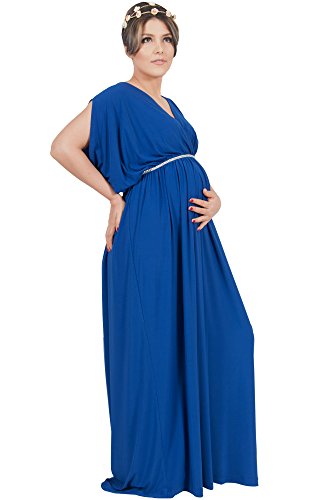 STYLE - This maternity long maxi dress with glam belt is absolute a must-have for all mom-to-be. This Turquoise pregnancy dresses feature short batwing sleeves and an elastic diamante waistband ensuring that the dress has a comfortable fit for all pregnant ladies