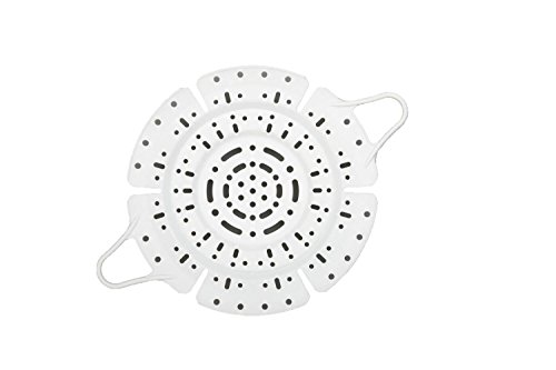 This Universal Silicone Steamer from Granite Ware easily turns any pot into a steamer pot for steaming vegetables, seafood and more! Made of 400-degree Fahrenheit heat-resistant silicone, the overlapping flaps fits 7.5 to 16 quart stock pots. The silicone steamer insert is microwave safe and top shelf dishwasher safe.Feature