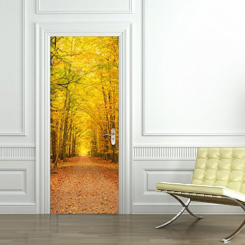 CaseFan 30.3x78.7" Deciduous Leaves Wall Mural Door Wallpaper Stickers Vinyl Removable 3D Decals for Home Decoration