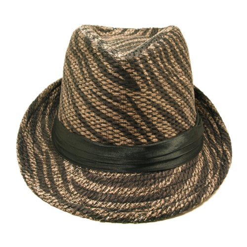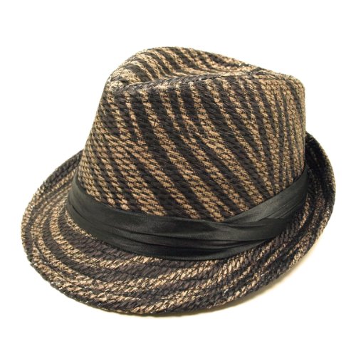 -. Binding : Apparel -. Brand : TrendsBlue -. ClothingSize : One Size -. Color : Black Brown -. Department : womens -. Feature : Brand new, made from paper straw / One size fits most / Premium quality -. ProductGroup : Apparel -. ProductTypeName : HAT -. Size : One Size -. Title : Black & Brown Zebra Print Black Band Fedora Straw Hat