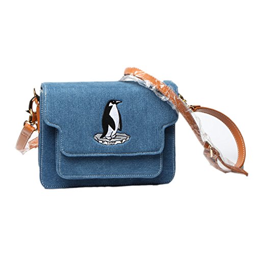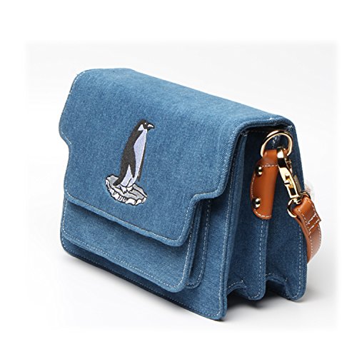-. Title : (BoToKiNo ボときの) ハンドバッグ レディース 春夏 軽い デニム 手作り 刺繍 ペンギン 肩掛け バッグ