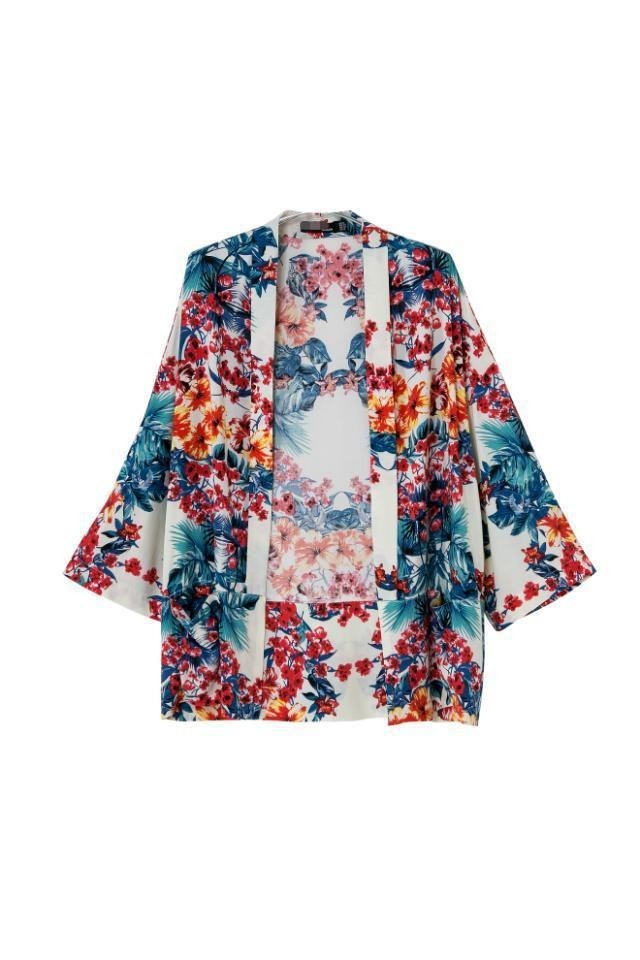 New Fashion Women Clothing Floral Print Three Quarter Sleeve Slim Kimono Cardigan Causal Women Blouses Plus Size in Stock
