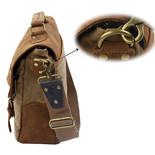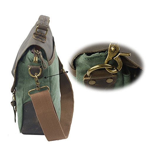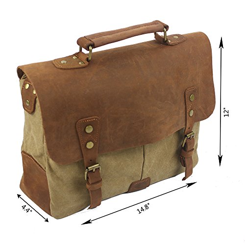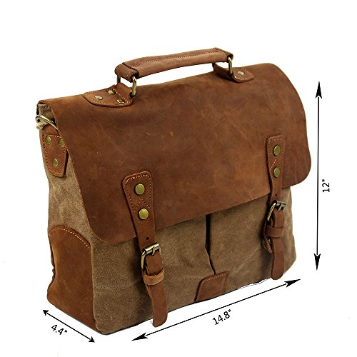 -. Feature : MATERIAL: Superior cowhide crazy horse leather and durable canvas. / PERFECT PROTECTION FUNCTION: This briefcase's inner foam paddings and bottom foam paddings will protect your notebook computers / POCKETS - Excluding the main storage compartment, 2 larger Front pockets featured on the messenger bag, / WEARABILITY - The messenger bag has a wide shoulder strap that can be easily removed when not required. The shoulder strap / PERFECT GIFT IDEA: Give this bag as a gift for someone with a new job, your spouse, new college student, etc.