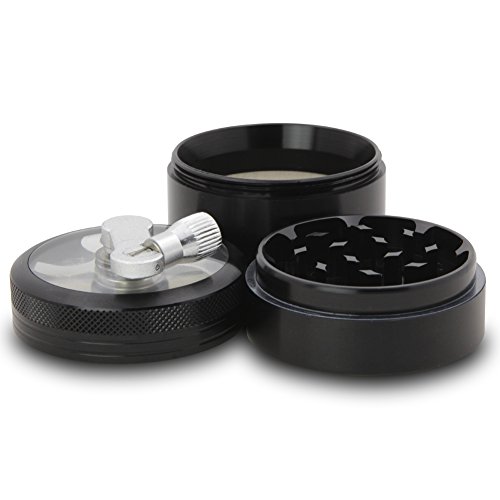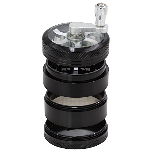 Best Handle Herb Grinder on the market today! - UNBREAKABLE handle and screw - Huge Sleek 4 part Tower unit - Easy to use for handle grinder - O-Ring prevents heat, twisting friction and that annoying metal on metal squeak - Diamond sharp teeth ensure a fresh grind every time - Grinds 2 times as much. Cranks it out - Fine Mesh Screen to Sift Pollen with ease - Top cover clicks shut with built in strong Neodymium rare earth magnet - Bonus free pollen scraper included - Great for grinding your own herbal tea - Smart! Looks great in the kitchen.