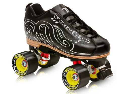 Studio : Labeda Publisher : Labeda Binding : Misc. Product Description Featuring a full leather stitched sole, premium leather uppers and a unique tribal design the Labeda Voodoo U-7 is one sweet ride. The Labeda Voodoo U-7 is the most affordable leather, stitched sole skate on the market today. Available in green, white or black, the Voodoo U-7 comes packed with the quality you would expect in a top of the line roller skate including the RTX600 plates with adjustable toe stops, high quality Labeda Night Ryder wheels and Chrome ABEC-9 Race Series bearings. This smooth ride is sure to turn heads! 0