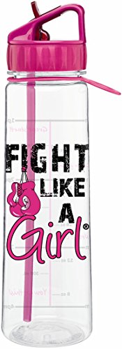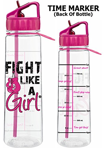Fight Like a Girl w/ Boxing Gloves Slimkim II Water Sports Bottle | Motivational Time Marker With Measurement Goals and Empowering Phrases 30 Oz