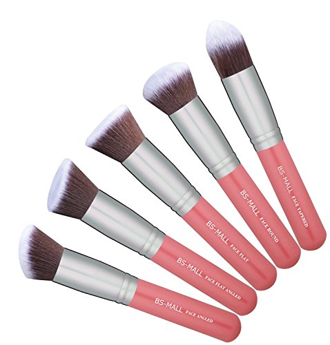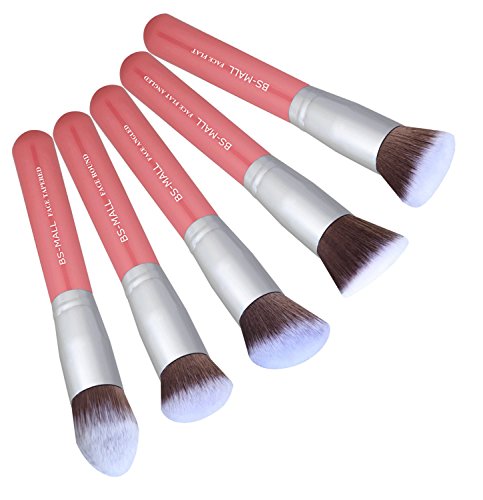 Silky Soft. Makes applying makeup a luxurious experience. The BS-MALL Premium Synthetic Kabuki Makeup Brush Set is perfect for both beginners and professional makeup artist. Five different types brushes(Angled, Round, Flat, Flat Angled, Tapered ) provide easy and professional solutions for basic cosmetics foundation. For example, the angled makeup brush is perfect for blush and bronzer. The small flat brush is for stipple concealer and blemishes. The flat brush is used for foundation.......Get this ten pieces of kabuki makeup brushes, give yourself a flawless foundation application every single time, start a new beauty journey!