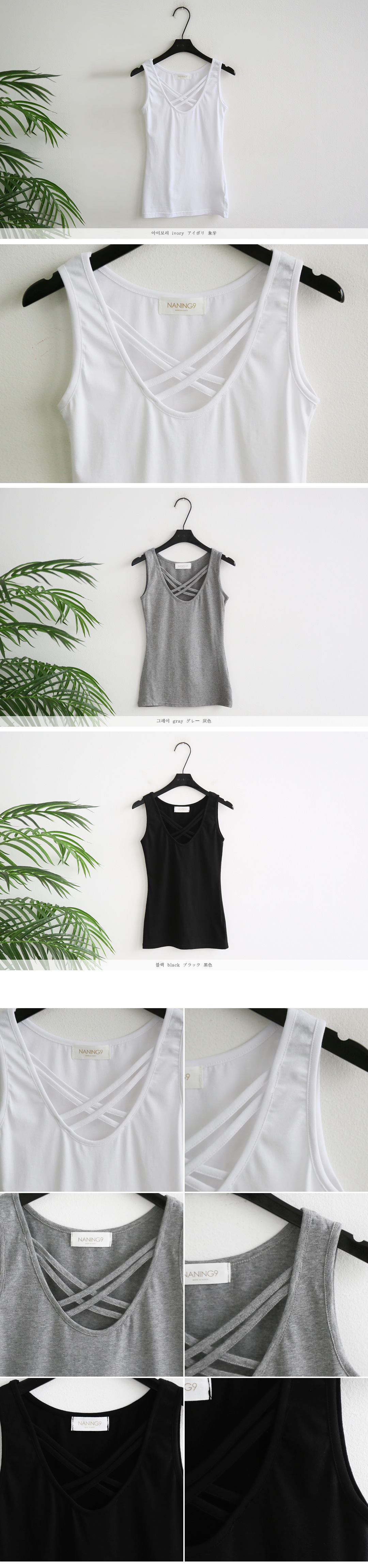 앞 X 스트랩으로 페미닌한 포인트를 주었구요 면,모달 혼방으로 통풍도
