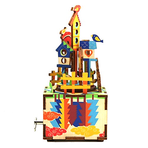 -. Title : Robotime 3D Puzzle Whirligig Crank Music Box