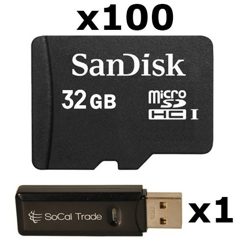 -. Title : 100 PACK - SanDisk 32GB MicroSD HC Memory Card SDSDQAB-032G (Bulk Packaging) LOT OF 100 with SoCal Trade USB 2.0 MicoSD & SD Memory Card Reader