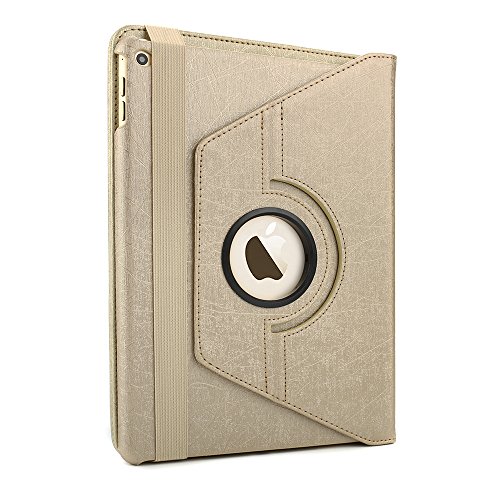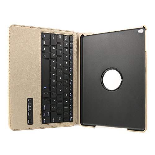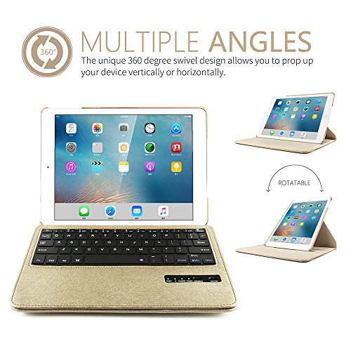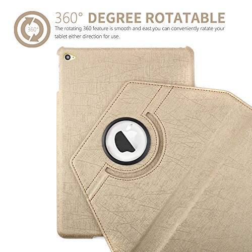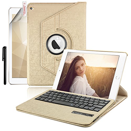 iPad Air 2 Keyboard Case, BoriYuan 360 Degree Rotating Detachable Wireless Bluetooth Keyboard Folio Stand PU Leather Cover for Apple iPad Air 2 with Screen Protector and Stylus, Gold
