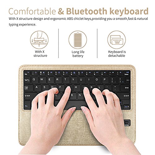 Compact and functional 3-in-1 Combo design: ABS keys removable Bluetooth 3.0 keyboard + protective synthetic leather case+ 360 degree rotation stand