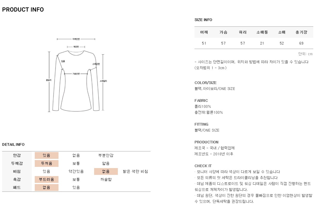 *모든 의류의 첫세탁은 드라이크리닝을 권장해드립니다*