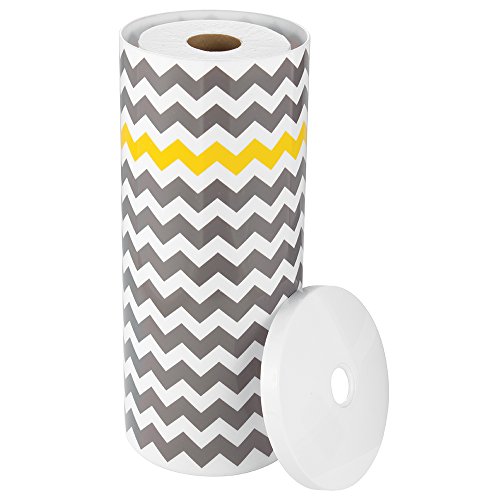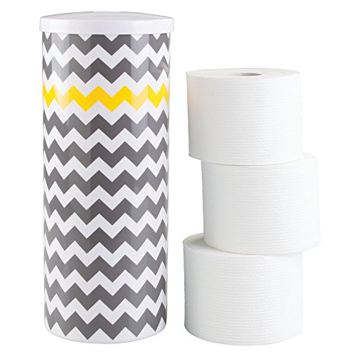 InterDesign Una Chevron Free Standing Toilet Paper Holder – Spare Roll Storage for Bathroom, Gray/Yellow