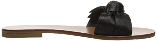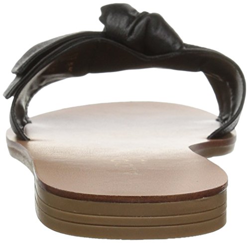 Flat slide-on sandal featuring leather bow strap and 0.5'' heel