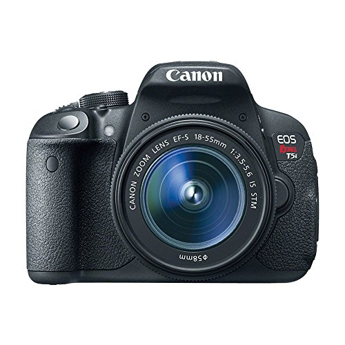 The Canon EOS Rebel T5i DSLR Camera with EF-S 18-55mm f/3.5-5.6 IS STM Lens is an APS-C format digital SLR camera with an 18MP CMOS sensor and the DIGIC 5 image processor. It is combined with the EF-S 18-55mm f/3.5-5.6 IS STM lens for an effective range of wide-angle to standard focal length. With 14-bit Analog/Digital conversion, an ISO range from 100-12800 (expandable to 25600) and Multi Shot Noise Reduction, the Rebel T5i offers sharp details, accurate colors and low-noise imaging in both bright and low-light shooting situations. Its 9-point all cross-type autofocus system provides fast focusing when shooting with the viewfinder, and Hybrid CMOS AF increases autofocus speeds when shooting in Live View. The Rebel T5i can continuously shoot up to 5 fps.