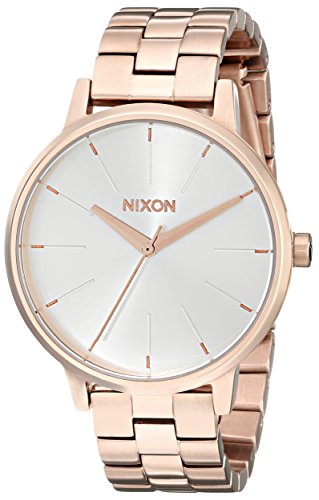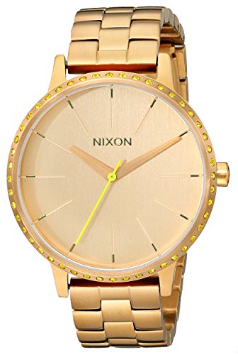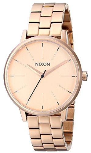 A classic, versatile Nixon watch. Slim markers detail the round dial. Gold-tone link band. Hinge-snap clasp.