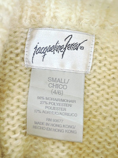 Ladies ブランド カラーオフホワイト メール便不可 コンディション★★★ 素材モヘア・ポリエステル・アクリル 表記サイズSMALL 実寸サイズ 着丈 59 cm 身幅 46 cm 肩幅 41 cm 袖丈 40 cm ※ウエスト・ヒップ以外は平置き採寸【code】#b