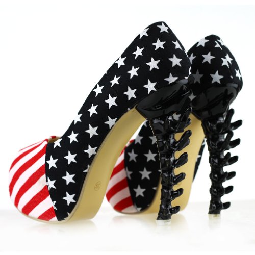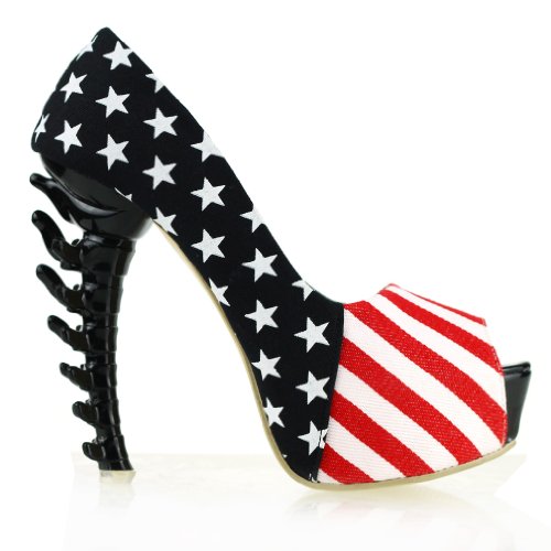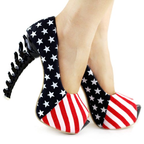 - Title : Show Story Dinosaur Bone Rough PeepToe Denim USA National Flag 5" Pumps,LF40602