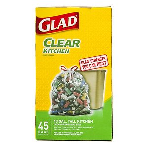 -. Title : Glad Recycling Tall Kitchen Drawstring Trash Bags 13 Gallon Clear 45.0 ea