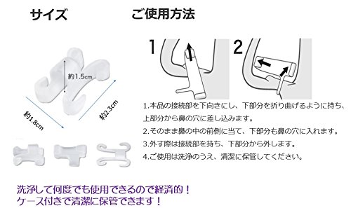 To snore measures, it is made of silicon nose breathing Support Goods. Wide open for unrestricted nasal cavity with Easy installation, to achieve a smooth nose street. Nasal congestion occurs in the cause "nose snoring" and, for those who want to improve the mouth breathing during sleep. Is reluctant annoying to snoring is noisy family [to your worries of snoring that do not heal easily]. I do not want to go to travel embarrassed snoring. Awareness although not in trouble is pointed out to the people. Tired easily because not sleep soundly. Breath is painful unable to sleep well easily enter into the nasal cavity in the [simple and comfortable snoring measures] software, there is no pain even though wearing a long period of time. It is a comfortable feeling to fit regardless of the shape of the nasal cavity. Because it does not stand out in nature, it can be used in both men and women. [Feature] ■ Increase the safe and efficient nasal cavity ■ attaching feeling no discomfort in a comfortable feeling ■ excellent stretch, feel free to be a clear color ■ women with a corresponding ■ cleanliness to the size of the various nasal cavity able use, by pinching the hard shape [How to use body visible from the outside from both sides only put in the nose. Because it is very easy, you can use feel free to contact regardless of gender. Wash is used economically repeatedly possible. During sleep, of course, even when the nose jam or sports.