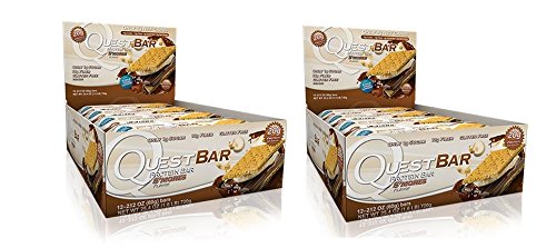 -. Binding : Health and Beauty -. Brand : Quest Nutrition -. EAN : 0707581858722 -. Feature : 20 grams of High Quality Protein per Bar / Only4 Grams of Net Carbs per Bar * Great to Add to Baked Goods / 13 Grams of Dietary Fiber per Serving * #CheatClean Never got so Easy / Only 180 Calories (80 from fat) per Serving / Made With Soluble Corn Fiber * Gluten Free * No Artificial Sweeteners -. Label : Quest Nutrition -. LegalDisclaimer : Contains: Almonds and milk-derived ingredients. -. Manufacturer : Quest Nutrition -. PackageQuantity : 2 -. ProductGroup : Health and Beauty -. ProductTypeName : HEALTH_PERSONAL_CARE -. Publisher : Quest Nutrition -. Size : 24 Pack -. Studio : Quest Nutrition -. Title : Quest Nutrition Protein Bars - Smores - 24 Count -. UPC : 707581858722