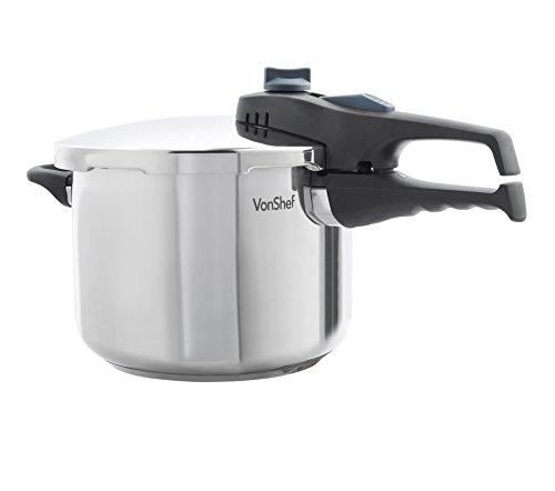 VONSHEF STAINLESS STEEL PRESSURE COOKER FOR ALL COOKING SURFACES, 6.3 QT