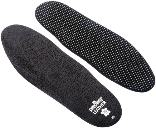 ReleaseDate : 2013-01-01 Studio : Pedag Publisher : Pedag Binding : Health and Beauty Product Description BLACK LEATHER 281047-Extended Arch Shape. Naturally tanned leather allows the foot to breathe and absorbs humidity so feet stay fresh and dry. The effective, natural, active carbon filter absorbs odor. Black Leather keeps the inside of shoes fresh and clean, while keeping feet comfortable too. Black Leather also keeps socks and stockings fresh. Black Leather 281047, easily fits into men’s comfort shoes and boots, as either a supplemental, or a replacement insole. Selection Guide to Pedag Flat Leather Insoles: Pedag modified a few of their flat leather insoles, and 2012 was a transition year. This has lead to some confusion, for which we apologize. Pedag has added an entirely new item for men, Article 281047, size 41-48 in a wider shape in the arch area. Because of the extended arch area, 281047 is the ideal shape for men’s comfort shoes, hiking boots, etc. Gentlemen, if you want leather shoe insoles in the perfect shape for business or dress shoes, please look at Pedag 2810. The tem on this page, Article 281047, is available in men’s sizes 41-48 only, and has the extended arch shape. In a nutshell, Pedag now makes 5 slightly different flat leather insoles: 1. Article 172 is TAN leather, with active charcoal odor control, regular shape, DOUBLE SIZED from W5/6-M12/13, and trimmable. (EU-35/36-45/46), 2. Article 110 is TAN leather, with active charcoal, whole men’s sizes 43, 45, 47, 48, regular shape. 3. Article 102 is called ROYAL and is TAN leather, with active charcoal odor control. In addition, Royal has a very thin latex foam layer which gives light padding. Royal is available in sizes men’s and women’s whole sizes 35-48. 4. Article 2810 is BLACK leather, with active charcoal, whole sizes 36-48, regular shape in both women’s and men’s sizes. 5. Article 281047 is BLACK leather, with active charcoal, whole sizes 41-48, is wider in the arch area-new extended shape. 0