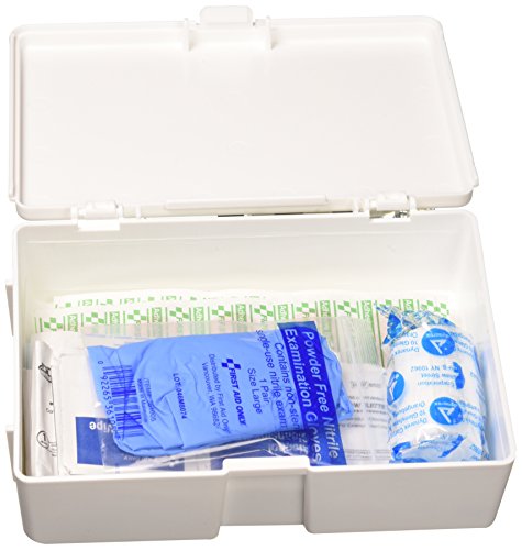 ReleaseDate : 2015-06-22 Studio : Graham-Field Health Products (Lumiscope) Publisher : Graham-Field Health Products (Lumiscope) Binding : Health and Beauty Product Description Contains 4 extra-strength non-aspirin tablets; 2 aspirin tablets; 2 ibuprofen tablets; 1 antibiotic ointment pack; 6 alcohol cleansing pads; 6 BZK antiseptic towelettes; 10 ¾” x 3” adhesive plastic bandages; 1 2” x 4” elbow knee plastic bandage; 10 3/8” x 1½” junior adhesive plastic bandages; 1 knuckle fabric bandage; 1 fingertip fabric bandage; 1 5” x 9” trauma pad; 4 2” x 2” gauze dressing pads; 1 2” conforming gauge roll bandage; 2 butterfly wound closures; first aid guide and accident report form; 2 exam quality vinyl gloves and plastic case. 0