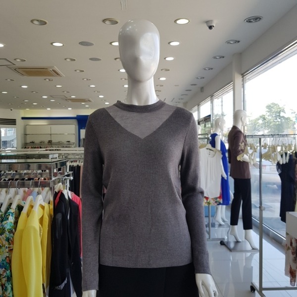 라운드 기본 니트 티-CA7F8-WSL010-그레이
