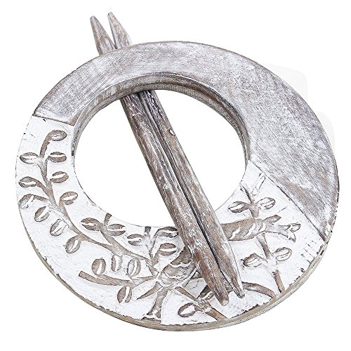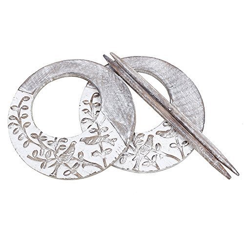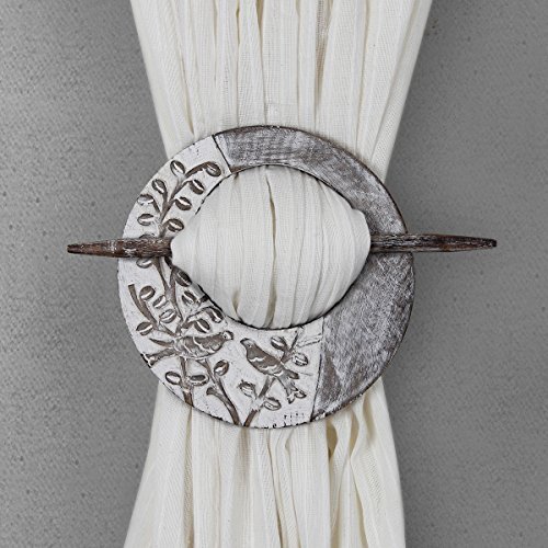 White Distressed Wooden Tiebacks Holdbacks Set of 2 Window Treatment Drape Binds Hand Carved with Rustic Finish Shabby Chic Home Decor