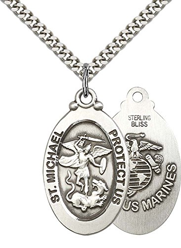 -. Title : Sterling Silver St. Michael / Marines Pendant with 24" Stainless Steel Heavy Curb Chain. Patron Saint of Police Officers/EMTs