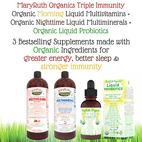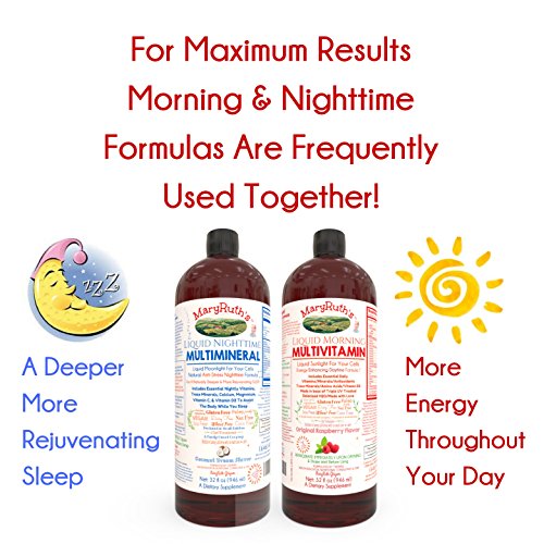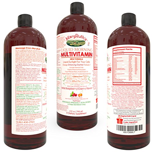 Pure Liquid Multi-Vitamin formulated by Certified Health Educator and Nutritional Consultant MaryRuth Ghiyam. The Formula is designed for maximum absorption and assimilation to ensure that your body gets the essential elements it needs. Formulated for MEN & WOMEN! The MaryRuth Method is known all around the world for helping individuals Achieve Their Ideal Weight, Ideal Health, and Ideal Energy. MaryRuth's "Vitamin Shots" have become a hit amongst her native New York clientele and is now available worldwide. Benefits Include: *Certified Organic Ingredients *Essential daily vitamins needed for the average adult male/female *72 Minerals, Antioxidants, Trace Minerals, 20 Amino Acids *100% daily needed dosage of Vegan Vitamin D3. *A unique base of TRIPLE UV Treated Deionized H20. *Made in small batches to retain freshness, not mass produced in bulk quantities. Approximately 200 bottles made by hand in each batch. *Batches shipped to Amazon daily and remain fresh up to 2 years. The bottle you receive was likely made the week you purchased it! *Woman owned and family owned *Made in Sunny California *Vegan, Gluten Free, Wheat Free, Nut Free, Soy Free, Dairy Free. *Most importantly, one of few liquid vitamins with NO Nightshades (ex. tomato) whatsoever. Our highest purity Vegetable Glycerin is sourced from Palm Oil NOT CORN! *24/7 Customer Support. If you're not happy we will do EVERYTHING IN OUR POWER to ensure excellent customer service. *Backed with MaryRuth's personal guarantee for quality. Often used in combination with MaryRuth Organics Liquid Nighttime Multimineral (Coconut Puree) NO WHITE SUGAR ADDED. The Nighttime Multimineral provides a deeper and more relaxing sleep.Feature