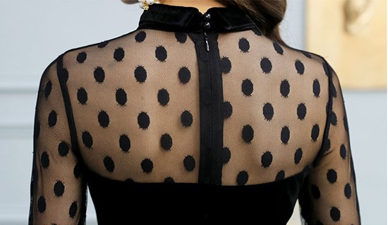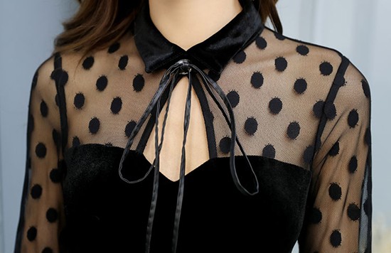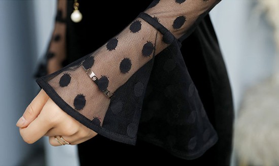 袖の透け感がセクシーなホーンスリーブのベルベットワンピース。