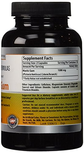 -. Feature : Supports gastrointestinal and oral health - Natural and safe for occasional stomach relief / Provides antioxidants and additional beneficial nutrients / Mastic Gum 500 mg per Capsule -- 120 Capsules per Bottle / All Amazing Nutrition products are manufactured in accordance with Good Manufacturing Practices (GMP), among the highest standards in the world. / All our products are proudly made in USA with Guaranteed Purity & Potency. We offer best quality products for the best value. All our products are thoroughly tested. We do not compromise on quality, our products are free of Artificial ingredients, Stearates, Sulphates, Dioxides and Laurates.