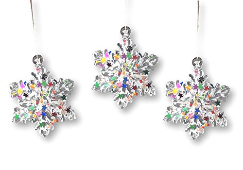 - SNOWFLAKE ORNAMENTS. Cute set of 3 colorful blown-glass snowflakes. Each one comes with a silver cord for hanging. Decorate your Christmas tree, garland, DIY wreath, hang in your windows or use them as a present topper. They are the perfect little gift for your family and friends this HOLIDAY SEASON.