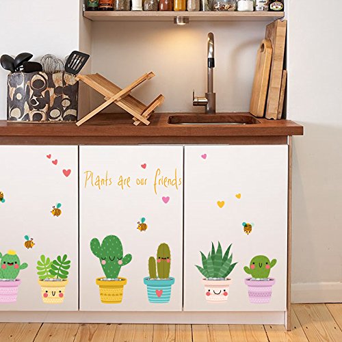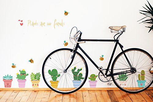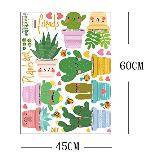 Yesfeel Plants Are Our Friends Cactus Wall Décor Peel & Stick For Children Bedroom Living Room Cute Trendy