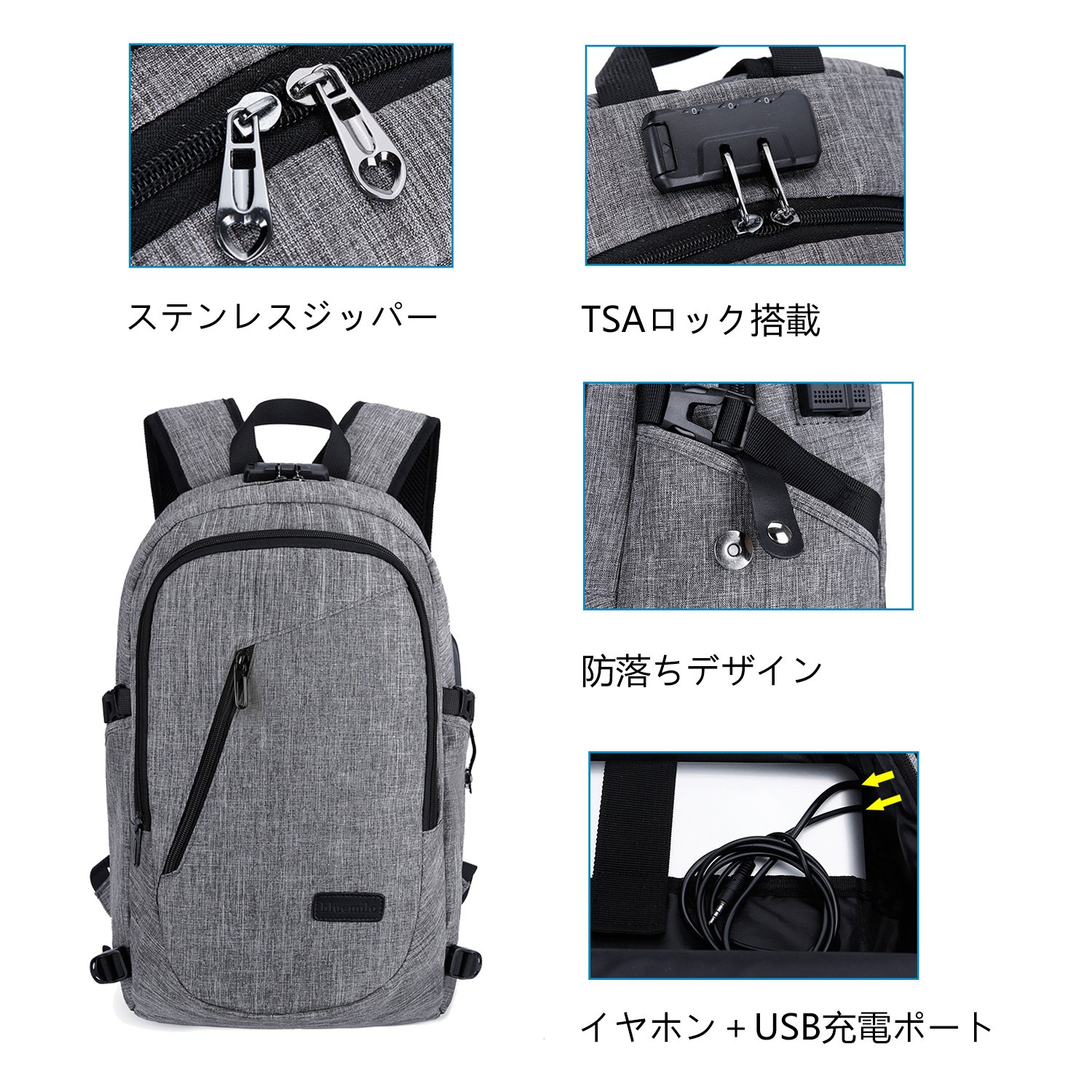 Backpack with usb port Business backpack with anti-theft backpack Large capacity multifunctional backpack TSA lock inlay Travel back External USB chargeable + earphone port PC bag 16 inch PC can be stored, college stud backpacking backpack / outdoor pack casual school trip business trip business