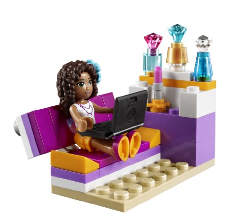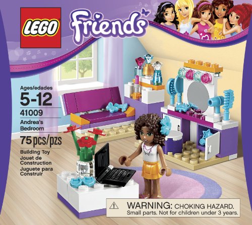 -. Binding : Toy -. Brand : L.E.G.O -. Color : Multicolor -. EAN : 0673419189477 -. Feature : Features makeup vanity and stool with hair accessories, coffee table with flower vase and laptop, convertible sofa with stand for perfume bottles / L.E.G.O Friends pieces are fully compatible with all L.E.G.O System bricks / L.E.G.O mini-dolls are L.E.G.O figures made especially for the world of L.E.G.O Friends that can be customized and combined in thousands of ways / Measures over 2" high, 6" wide and 1" deep -. Genre : strategy -. IsAdultProduct : 0 -. IsAutographed : 0 -. IsMemorabilia : 0 -. ItemPartNumber : 41009 -. Label : L.E.G.O -. Manufacturer : L.E.G.O -. Model : 6024516 -. MPN : LG-579 -. PackageQuantity : 1 -. PartNumber : LG-579 -. ProductGroup : Toy -. ProductTypeName : TOYS_AND_GAMES -. Publisher : L.E.G.O -. ReleaseDate : 2013-08-01 -. Studio : L.E.G.O -. Title : L.E.G.O Friends Andrea's Bedroom (41009) -. UPC : 673419189477 -. Warranty : No Warranty