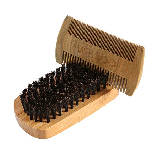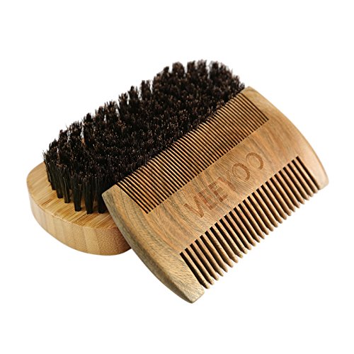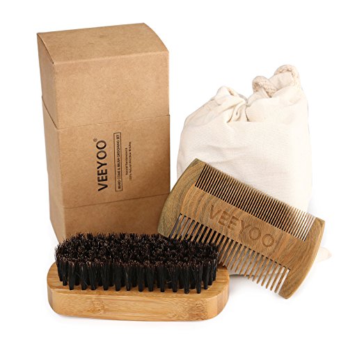VEEYOO Beard Brush and Comb Set for Men - Handmade Wooden Comb & Natural Boar Bristle Beard Brush Kit for Beards & Mustache Conditioning, Styling &...