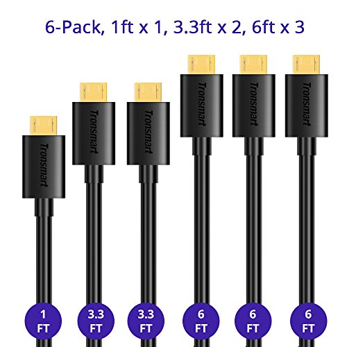 Package Content:Tronsmart 6-Pack Micro USB Cable (1ft x 1, 3.3ft x 2, 6ft x 3),18 month worry-free warranty