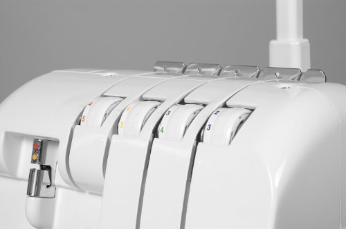 -. Feature : 2 Needles and convertible 3 or 4 thread / Free-arm sewing, convertible presser foot, and differential feed mechanism, and light for a brighter work area / Color-coded threading chart for fast and easy threading / Differential feed prevents wavy seams in knitted fabrics and movement between the layers of fabric. It also ensures pucker-free seams on light weight fabrics / A machine adjustment chart to help you to sew beautifully based on stiffness and thickness of fabric, thread size and type.