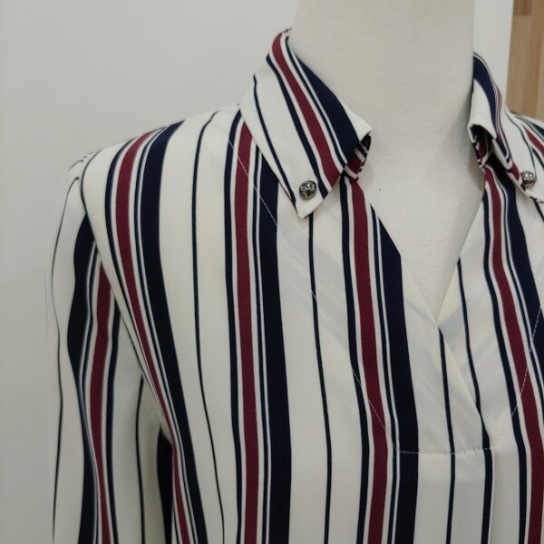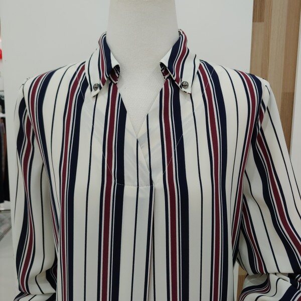 브이넥과 더불어 장식포인트를 드리운 카라네크라인으로 세련된 스타일링이 돋보입니다