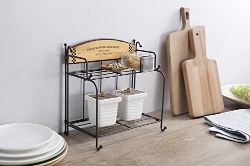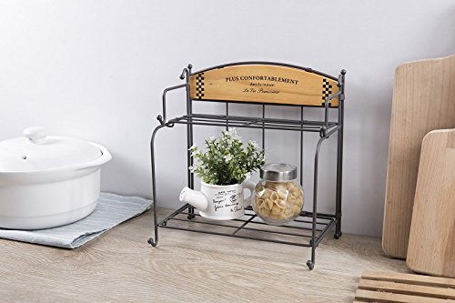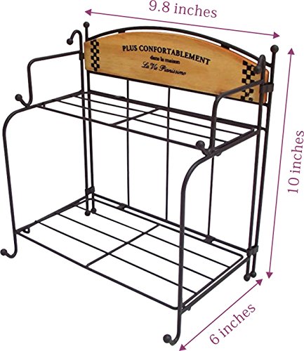 - CAST IRON & MULTI-FUNCTIONAL: Sturdy high quality cast iron construction with wooden plate;Durable for years;Organize & Storage your spice,bottles,jars,miniature plants,flower pot,kitchen ware ...etc; Suitable for the desk table of kitchen,patio,restaurant,store,office, anywhere finds suitable;