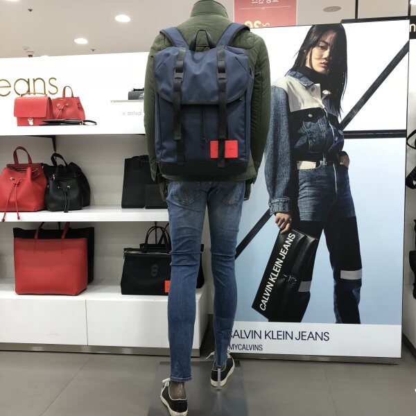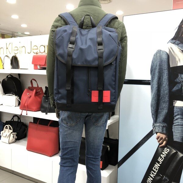 탄탄한 짜임의 나일론 소재에 CK 로고 패치 포인트.내부 15인치 노트북 수납 가능.