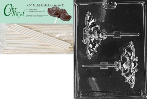 Cybrtrayd 45St25-H021 Bat Lolly Halloween Chocolate Candy Mold with 25 4.5-Inch Lollipop Sticks