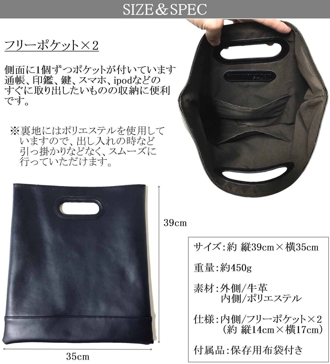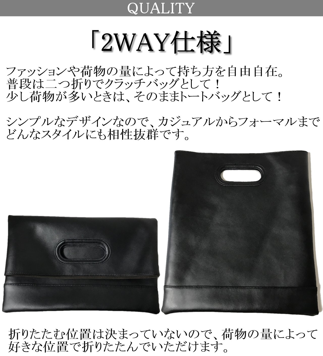 By having a handle, you can use it as it is as a tote bag, use it as a clutch bag by folding in two and change the way you hold according to fashion, you can also change freely depending on the amount of luggage.