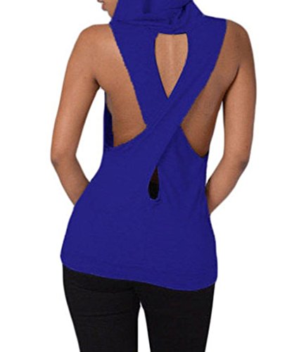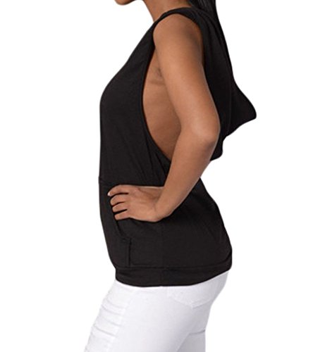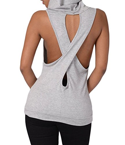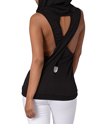-. Title : Womens Fashion Casual Hooded Cross Back Vest Sleeveless Top