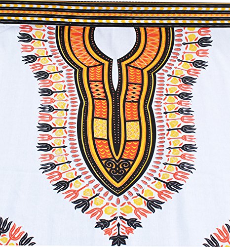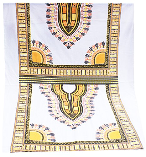 RaanPahMuang Light Aum100 100% Cotton Fabric with Afrikan Dashiki Pattern 70"x40" , White Yellow